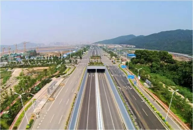 橫琴新區(qū)市政基礎(chǔ)設(shè)施BT項(xiàng)目非示范段主、次干路市政道路工程(一期工程)I標(biāo)段-中心南路位于珠海市橫琴新區(qū),于2011年6月開工,2014年9月竣工驗(yàn)收,合同價約21億元,道路全長7.03km,寬60m,雙向6車道,瀝青混凝土路面,包括4座下穿隧道、7座箱涵和7座人行通道。道路北側(cè)管廊帶沿線布置兩倉式綜合管溝,電力、通訊、有線電視及規(guī)劃的供冷、供熱、給水、中水、垃圾真空管等設(shè)置在管溝中,分期實(shí)施,節(jié)約了城市用地。管溝內(nèi)設(shè)置監(jiān)控系統(tǒng)、消防系統(tǒng)、自動控制、自動通風(fēng)、自動排水等系統(tǒng),采用先進(jìn)的PLC控制,由控制中心集中監(jiān)控,實(shí)現(xiàn)綜合管溝的安全、可靠運(yùn)行。道路沿線管廊帶區(qū)域設(shè)置城市綠道,各功能性設(shè)施外觀與道路景觀融為一體,凸顯了橫琴綠色、智能的現(xiàn)代化城市特色。