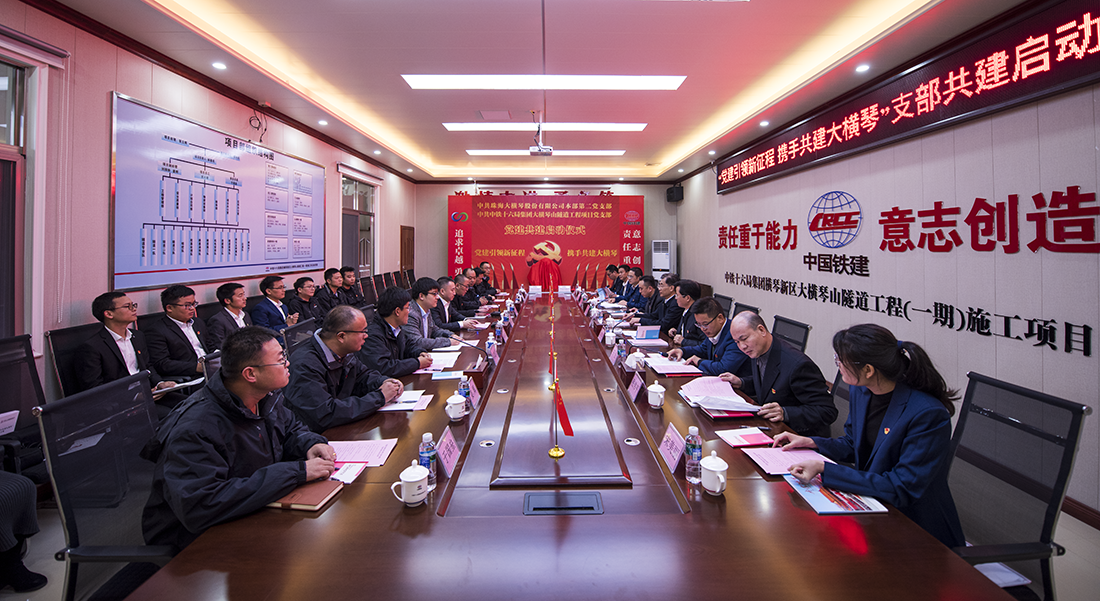 12月14日,珠海大橫琴股份有限公司本部第二支部與中鐵十六局集團有限公司橫琴新區(qū)大橫琴山隧道工程(一期)施工項目黨支部聯(lián)合舉辦了以“黨建引領(lǐng)新征程 攜手共建大橫琴”為主題的黨建共建啟動儀式,并簽訂共建協(xié)議。出席啟動儀式的領(lǐng)導(dǎo)和同事